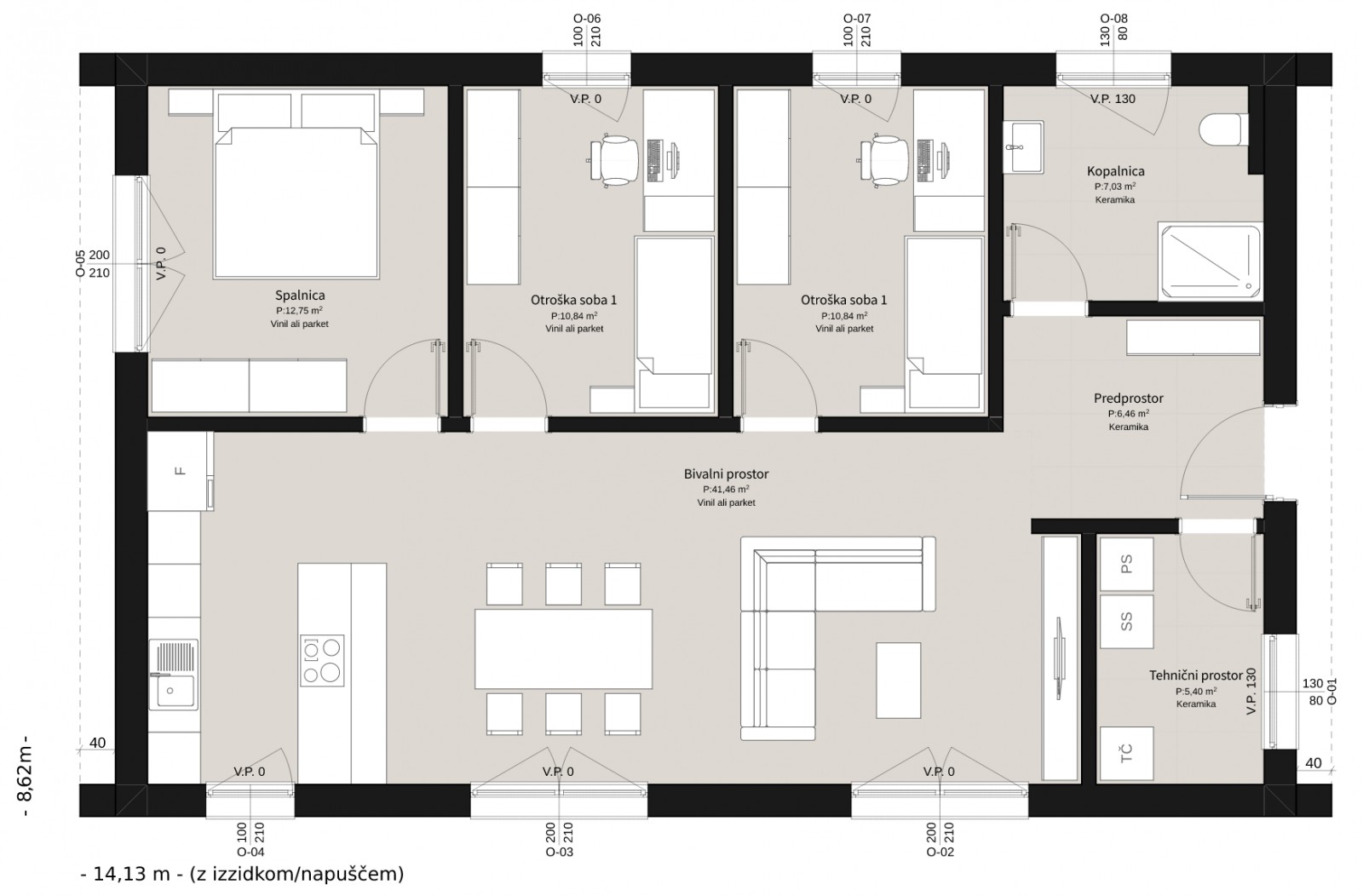 Izpeljanka ONE 95/1 z dodatno otroško sobo.